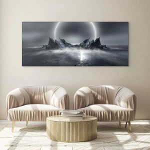 "Mørk scene med en formørkelse og en klippeø" er et forslag til fans af filmæstetik, sci-fi og atmosfærisk grafik. Dette maleri vil passe perfekt ind i en moderne stue, ungdomsværelse eller kreativt rum. Dets udtryksfulde stil og unikke atmosfære gør glasmalerier med dette motiv til en unik accent i ethvert moderne arrangement.