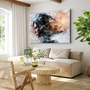 Lærredstryk - Billede på lærred - Portræt af en kvinde, der kombinerer sit ansigt med et bylandskab i baggrunden - 70x50cm - Historien om en pige med en by i baggrunden - Moderne vægdekoration til stue og soveværelse ARTTOR