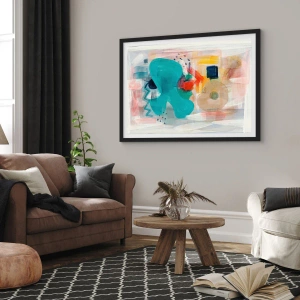 Plakat i sort ramme - Farverig abstraktion med dynamiske former - 50x70cm - Et farverigt spil - Moderne vægdekoration til stue og soveværelse ARTTOR