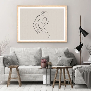 Plakat i ramme af lyst egetræ - Intim skitse - 70x100 cm