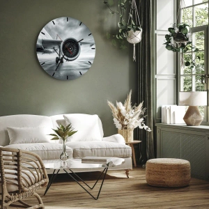 Vægur "Der er kraft!" er en moderne komposition, hvis hovedelement er et nærbillede af et passagerflys jetmotor. Det dynamiske billede fanget på landingsbanen fra jorden giver hele scenen et indtryk af kraft, præcision og teknologisk perfektion.