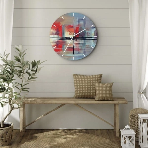 Uret er fremstillet af 4 mm tykt sikkerhedsglas. Urets fremstillingsteknologi er i overensstemmelse med sikkerhedsklasse 2B2 i henhold til EN 12600:2004, hvilket garanterer slagfasthed. Uret på glas er klar til at blive hængt op - det har et metalophæng fastgjort på bagsiden af uret og en skumafstandsholder til at regulere urets lige afstand fra væggen. Uret har en lydløs mekanisme, der drives af et 1,5 V - AA-batteri (batteri medfølger ikke).