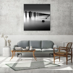 Billedet på glas er lavet af 4 mm tykt glas. Glassets kanter har et mat trapezformet snit. Billedet er sikkert at bruge og klar til at hænge op - der er metalophæng fastgjort på bagsiden af billedet og skumafstandsstykker til at regulere billedets jævne afstand fra væggen.