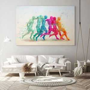 Vægkunst - Harmony of Motion - Farverig abstraktion, der skildrer løbende figurers bevægelse