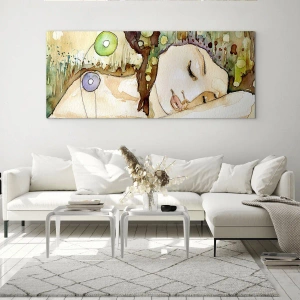 Billede på glas - Smaragd-violet drøm - 100x40 cm