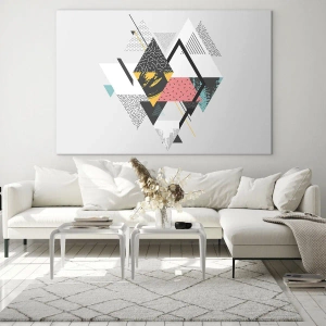 Billede på glas - Abstrakt geometrisk komposition med trekanter og romber - 70x50cm - Variation af trekanter og rhomber - Moderne vægdekoration til stue og soveværelse ARTTOR