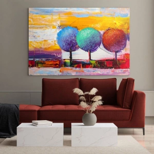 Vægbillede - Tre gange kunsten - Farverige abstrakte træer på en intens baggrund