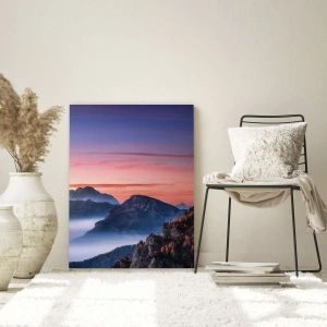 Bjerge er et symbol på frihed og uendelige muligheder. Bjergkæderne, der er fanget i dette maleri, indhyllet i en tåget morgenaura, indfanger naturens majestæt og dens unikke skønhed. Dette er et perfekt valg for rejseentusiaster, landskabsfotografer og dem, der søger inspiration i verden omkring dem.