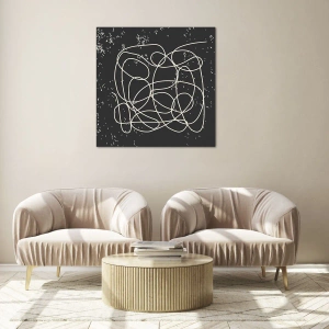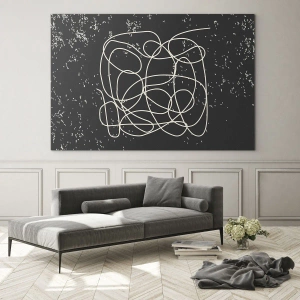 Billede på glas - Abstrakt linje i form af et virvar på en tekstureret sort baggrund - 70x50cm - Vandrende tanker - Moderne vægdekoration til stue og soveværelse ARTTOR