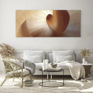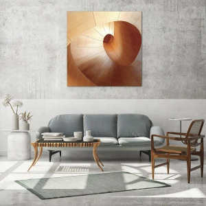 Billede på glas - Træspiralformet arkitektonisk struktur i varme farver - 70x50cm - Arkitektonisk serpentin - Moderne vægdekoration til stue og soveværelse ARTTOR