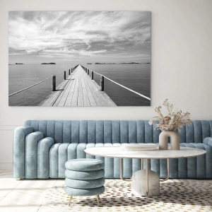 Motivet af en ensom mole, der strækker sig ud i det fjerne, fremkalder associationer til drømme, refleksion og ubegrænset frihed. Det er en ideel mulighed for dem, der søger et øjebliks pusterum i deres eget rum. Maleriet vil fungere perfekt i både en moderne stue og et mere klassisk soveværelse. Takket være sine neutrale farver og minimalistiske form komplementerer det perfekt interiører indrettet i skandinavisk, loft- eller industriel stil. Det blander sig smukt med beton, mursten...
