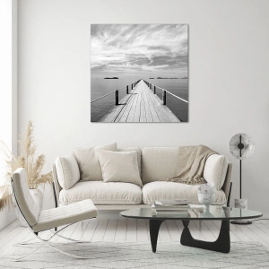 Billede på glas - En træmole, der fører ud i det fjerne over et roligt hav - 70x50cm - Eller måske en rejse... - Moderne vægdekoration til stue og soveværelse ARTTOR