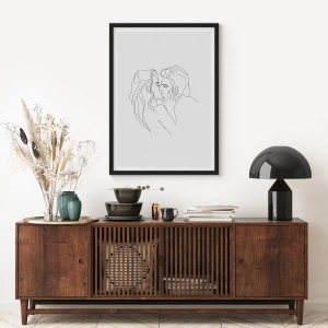 Plakat i sort ramme - En minimalistisk tegneserie af et kyssende par. - 50x70cm - I samme linje - Moderne vægdekoration til stue og soveværelse ARTTOR