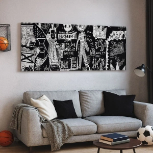 Lærredet er spændt op over rammen. Siderne og kanterne trykkes for at danne en fortsættelse af billedet. Maleriet er klar til at blive hængt op på væggen. Hvert produkt har en bøjle, der er fastgjort til rammen, og et samlesæt (skrue + dyvel).