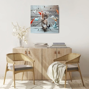 Uret er fremstillet af 4 mm tykt sikkerhedsglas. Urets fremstillingsteknologi er i overensstemmelse med sikkerhedsklasse 2B2 i henhold til EN 12600:2004, hvilket garanterer slagfasthed. Uret på glas er klar til at blive hængt op - det har et metalophæng fastgjort på bagsiden af uret og en skumafstandsholder til at regulere urets lige afstand fra væggen. Uret har en lydløs mekanisme, der drives af et 1,5 V - AA-batteri (batteri medfølger ikke).