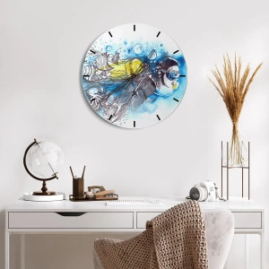 Uret er fremstillet af 4 mm tykt sikkerhedsglas. Urets fremstillingsteknologi er i overensstemmelse med sikkerhedsklasse 2B2 i henhold til EN 12600:2004, hvilket garanterer slagfasthed. Uret på glas er klar til at blive hængt op - det har et metalophæng fastgjort på bagsiden af uret og en skumafstandsholder til at regulere urets lige afstand fra væggen. Uret har en lydløs mekanisme, der drives af et 1,5 V - AA-batteri (batteri medfølger ikke).