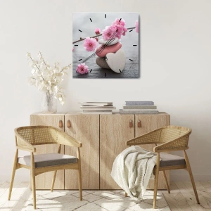 Vægur - Bliss with Cherry Blossom - Lyserøde kirsebærblomster på en gren med dekorative sten