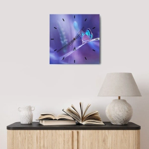 - Væguret 'Jewel of Nature' har et billede af en sommerfugl mod en baggrund af diskrete lilla og blå farver. Perfekt til interiører fyldt med elegance og ro.
