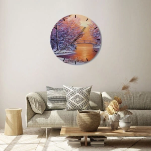 Uret på glas er klar til at hænge på væggen, det er udstyret med en monteret metalophæng for nem montering