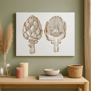 • Artiskok, Køkken, Grøntsager, Botanik, Gastronomi, Blomster, Stilleben, Pastel, Kunst, Til kontoret, Til arbejdsværelset, Til spisestuen, Til køkkenet, Til hallen, Til stuen, Til soveværelset, Hvid, brun, Lodret