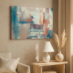 Lærredet er spændt op over rammen. Siderne og kanterne trykkes for at danne en fortsættelse af billedet. Maleriet er klar til at blive hængt op på væggen. Hvert produkt har en bøjle, der er fastgjort til rammen, og et samlesæt (skrue + dyvel).
