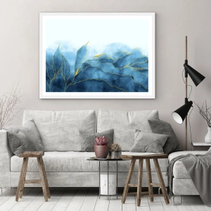 Plakat i hvid ramme - Blå i guld - 30x30 cm
