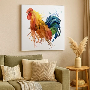- Dette akvarelmaleri forestiller en hane i livlige farver. Kombinationen af intense farver og detaljer skaber en unik, kunstnerisk karakter, der perfekt vil forbedre den rustikke atmosfære i ethvert interiør.