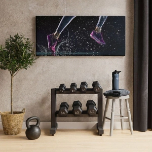 Billedets dimensioner 70x50 cm og lærredstrykteknologien sikrer den højeste kvalitet af håndværk og præcis gengivelse af detaljer. Den kontrasterende kombination af bevægelse, vand og en mørk baggrund giver kompositionen en unik karakter, og detaljerne i vanddråberne og sportsskoene tiltrækker opmærksomhed. Billedet vil være perfekt til et fitnesscenter, kontor eller stue, hvor det vil introducere en atmosfære af motivation og beslutsomhed.