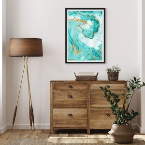 Plakat i sort ramme - Turkis og guld abstraktion i marmorstil - 50x70cm - Under den store bølge i Edo-perioden - Moderne vægdekoration til stue og soveværelse ARTTOR