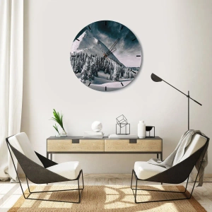 Vintermotivet gør uret perfekt til interiører inspireret af naturen, bjergstil eller skandinavisk stil. Dets kølige farver og realistiske detaljer skaber en harmonisk komposition, der vil være en perfekt accent i en stue, soveværelse eller kontor. Det runde format på 30x30 cm får uret til at blande sig elegant med andre dekorative elementer.