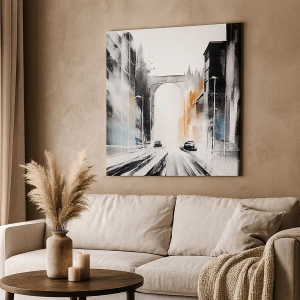 "En undersøgelse af en by: Arkitektur og bevægelse" er et færdigt lærredstryk, der er en perfekt gave til elskere af moderne kunst og urbane motiver. Det er en god mulighed for dem, der leder efter unikke vægdekorationer.