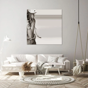 - Et monokromatisk portræt af en kvinde i bohemestil, udsmykket med smykker og diskrete detaljer. Et perfekt valg til stilfulde og sofistikerede interiører.