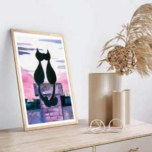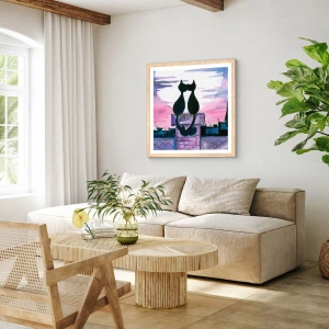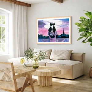 Plakat i ramme af lyst egetræ - Rendez-vous under månen - 91x61 cm