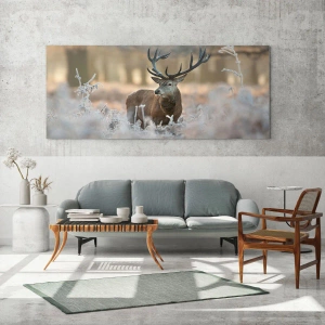 Vægbillede - Sprød morgen - Hjort i en frostklar lysning omgivet af en vinterskov