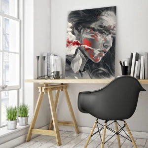 Denne dekoration vil fungere perfekt i moderne rum og tilføje en unik stil. Perfekt til en stue, soveværelse eller kontor, vil den introducere et strejf af avantgarde og kunstnerisk udtryk. Portrættet eksemplificerer en kombination af følelser og subtilitet, som får yderligere dybde takket være kontrasten mellem sort, hvid og rød.