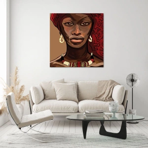 Vægbillede - Ebony Venus - Stiliseret portræt af en kvinde i en rød turban med smykker