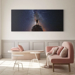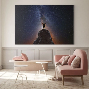 Figuren mod nattehimlen symboliserer mod, frihed og ønsket om at opdage det ukendte. Kompositionen er perfekt afbalanceret - himlens mørke toner står i kontrast til det subtile lys, der spredes af stjernerne. I baggrunden er et lyst spor af en forbipasserende stjerne også synligt, hvilket tilføjer dynamik og yderligere forstærker billedets følelsesmæssige effekt.