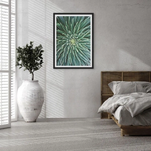 Delikate nuancer af grøn bringer ro og harmoni til rummet, hvilket gør denne plakat ideel til en stue, et soveværelse eller et kontor. Den sorte ramme, der følger med sættet, understreger billedets klarhed og sikrer, at det er klar til at hænge på væggen.