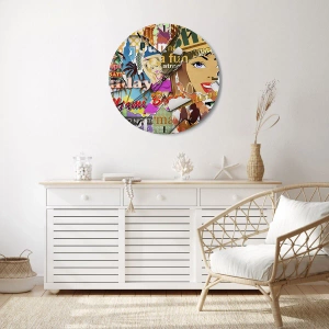 'Holiday Flashbacks' vægur er et utroligt farverigt og dynamisk dekorativt element, der tiltrækker opmærksomhed med sin unikke komposition. Det præsenterer en collage af retro-plakater, fuld af livlige farver, sommermotiver og nostalgi. Det er det perfekte valg for dem, der ønsker at bringe energi og en unik atmosfære til deres interiør.