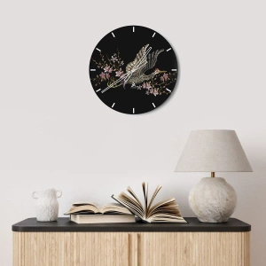 Vægur, Uret - Eksotisk broderet fugl - 40x40 cm