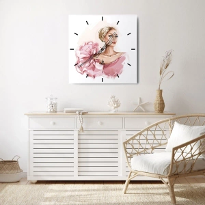 Uret er fremstillet af 4 mm tykt sikkerhedsglas. Urets fremstillingsteknologi er i overensstemmelse med sikkerhedsklasse 2B2 i henhold til EN 12600:2004, hvilket garanterer slagfasthed. Uret på glas er klar til at blive hængt op - det har et metalophæng fastgjort på bagsiden af uret og en skumafstandsholder til at regulere urets lige afstand fra væggen. Uret har en lydløs mekanisme, der drives af et 1,5 V - AA-batteri (batteri medfølger ikke).