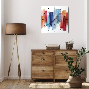 Vægur, Uret - Abstrakt motiv med farverige former og teksturer - 30x30cm - Op og ned - Moderne vægdekoration til stue, køkken og soveværelse ARTTOR