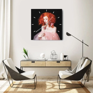 Vægur, Uret - Portræt af en kvinde med røde krøller og en rose i hånden - 30x30cm - I barokstil - Moderne vægdekoration til stue, køkken og soveværelse ARTTOR