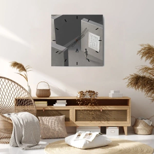 Uret er fremstillet af 4 mm tykt sikkerhedsglas. Urets fremstillingsteknologi er i overensstemmelse med sikkerhedsklasse 2B2 i henhold til EN 12600:2004, hvilket garanterer slagfasthed. Uret på glas er klar til at blive hængt op - det har et metalophæng fastgjort på bagsiden af uret og en skumafstandsholder til at regulere urets lige afstand fra væggen. Uret har en lydløs mekanisme, der drives af et 1,5 V - AA-batteri (batteri medfølger ikke).