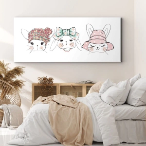 Lærredet er spændt op over rammen. Siderne og kanterne trykkes for at danne en fortsættelse af billedet. Maleriet er klar til at blive hængt op på væggen. Hvert produkt har en bøjle, der er fastgjort til rammen, og et samlesæt (skrue + dyvel).