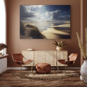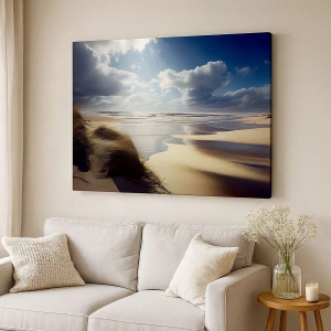 Lærredstryk - Billede på lærred - En vild strand med klitter og blå himmel - 70x50cm - Strand, vild strand - Moderne vægdekoration til stue og soveværelse ARTTOR