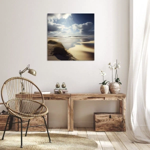 Maleriet blev skabt på lærred af høj kvalitet, der måler 70x50 cm i vandret format, hvilket gør det perfekt egnet til interiører indrettet i en moderne eller klassisk stil. Strandmotivet vil være perfekt til en stue, soveværelse eller et afslapningsområde og introducerer naturlig skønhed og harmoni.