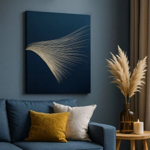 Vægkunst - Som en engels hår - En delikat linje, der ligner en fjer, på en marineblå baggrund