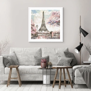 Plakat i hvid ramme - April gåtur rundt i Paris - 40x40 cm