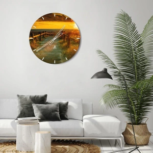 Billedet af solnedgangen over stranden er ikke kun en smuk dekoration, men også en påmindelse om øjeblikke med afslapning og nærhed til naturen. Dette ur kombinerer funktionalitet og elegance og er både en praktisk tilføjelse og et unikt dekorativt element, der inspirerer og tilføjer en varm karakter til interiører.